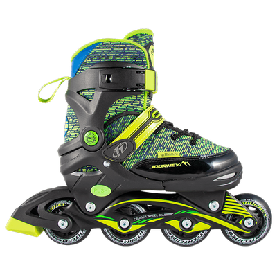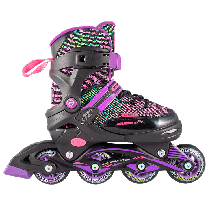 Journey - детские роликовые коньки, которые раздвигаются в диапазоне 4 размеров. Прочный механизм раздвижения позволяет без особых усилий подогнать конструкцию под нужную длину, что так важно, когда ребенок еще растет. Хорошо фиксируется на ноге и обеспечивает безопасность. Модель доступна в двух цветах.