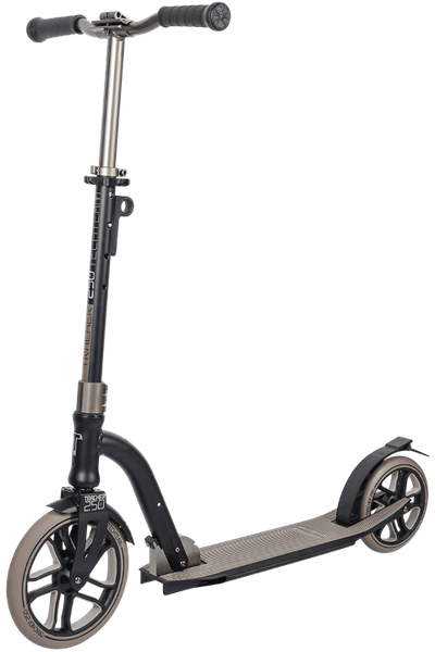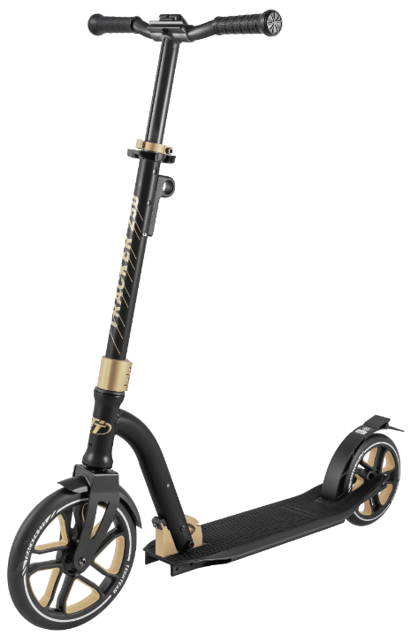Самокат в 2020 году был представлен в двух расцветках - сине- и черно-золотой, в 2021 мы добавили еще две - черную с коричневым и черную с серым.