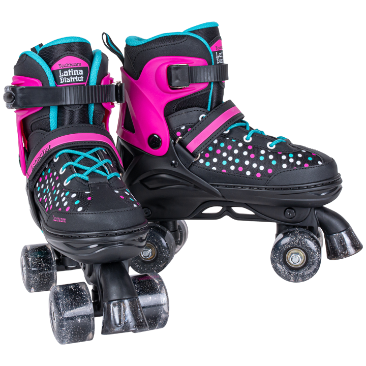 Квады (Quads) отличаются от привычных роликовых коньков колесами расположенными попарно на подвеске, аналогичной использемой в профессиональных скейтбордах. Катание на таких коньках получается проще, устойчивей и безопасней, что сразу оценили танцоры. И даже появилось целое направление "танцев на роликах". Ребенку освоить катание будет легко и просто.