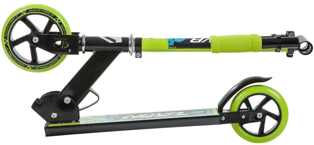 Самокат городской NOVATRACK JUNGLE сталь, складной, ватер стикер, колеса дизайн.145*125ммPU, черно-зеленый; Рекомендуемый возраст3+; Максимальная нагрузка50 Высота от пола до ручки: от 58.5 до 83.5 см Рулевая стойка регулируется по высоте Материал рулевой стойки: Алюминий