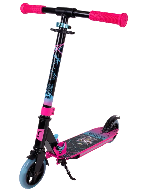 Колеса самоката выполнены из высококачественного прозрачного полиуретана, имеют диаметр 125 мм и ширину 24 мм. Детей порадует встроенная светодиодная подсветка колес.