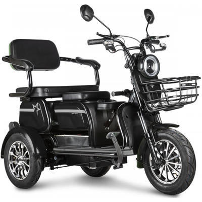 Электрический трицикл - новинка сезона 2025. Крутая, практичная и удобная, техника. Модель комфортная и удобная. Оснащена тремя сиденьями: основным креслом с удобной анатомической спинкой, дополнительным сиденьем и детским. Последнее расположено перед водителем, позволяет держать под контролем ребенка, исключить непредвиденные ситуации в дороге. Мощность электродвижка составляет 650 Вт. Ресус достаточный для мощной тяги. Безопасность эксплуатации гарантирована большими устойчивыми колесами. Глубокий протектор легко сцепляется с разными видами поверхности, накатистый. Яркие светодиодные фары и брендовые тормоза предоставляют возможность езды в вечернее время и своевременность торможения.