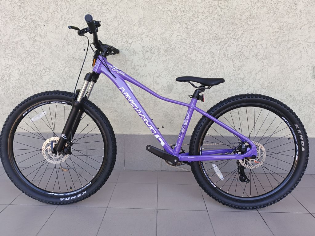 Трансмиссия включает 8-скоростную систему с кассетой 11-32T, что позволяет легко преодолевать как подъёмы, так и спуски. Обода с двойными стенками и покрышки Kenda 27.5 × 2.2 обеспечивают отличное сцепление и устойчивость на различных покрытиях.